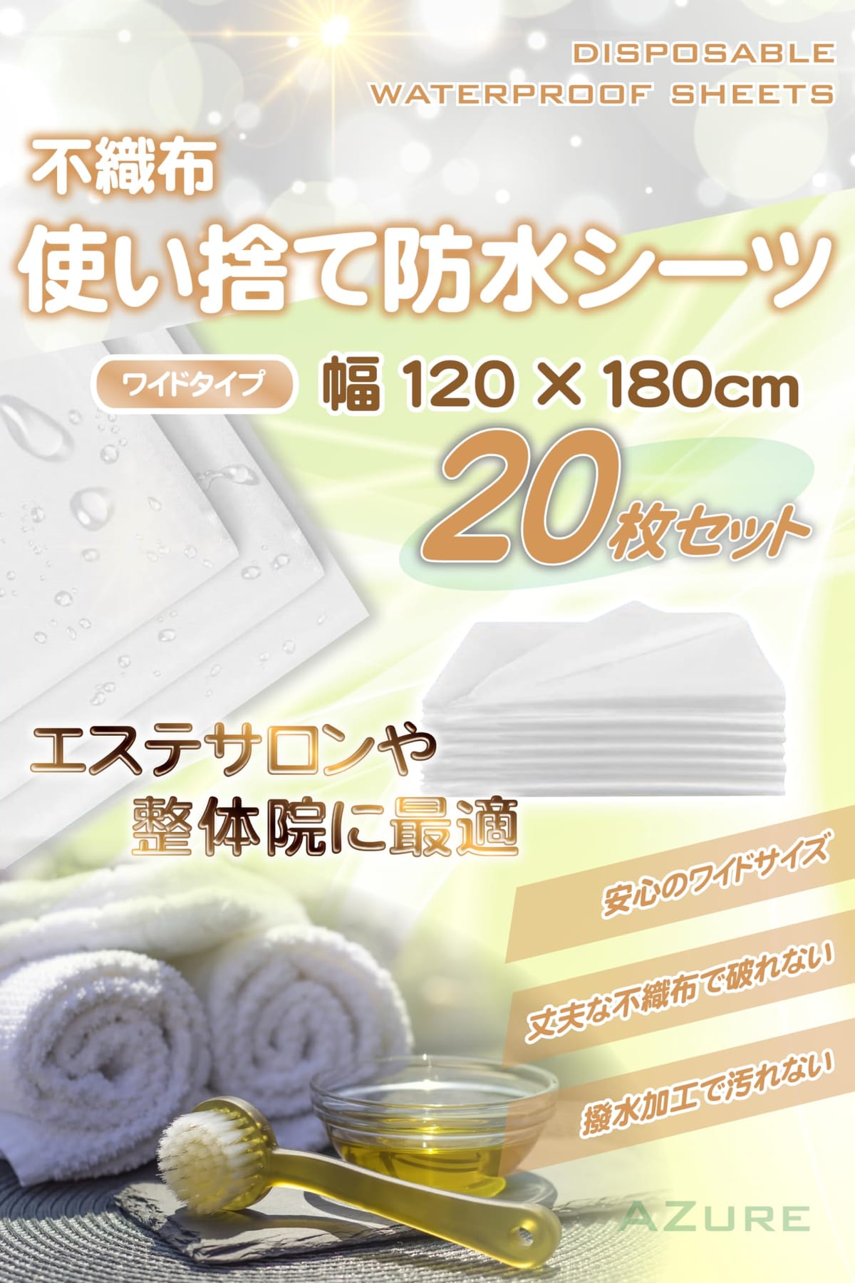 使い捨て防水シーツ 不織布シーツ 20枚 幅120×長さ180cm ワイドタイプ