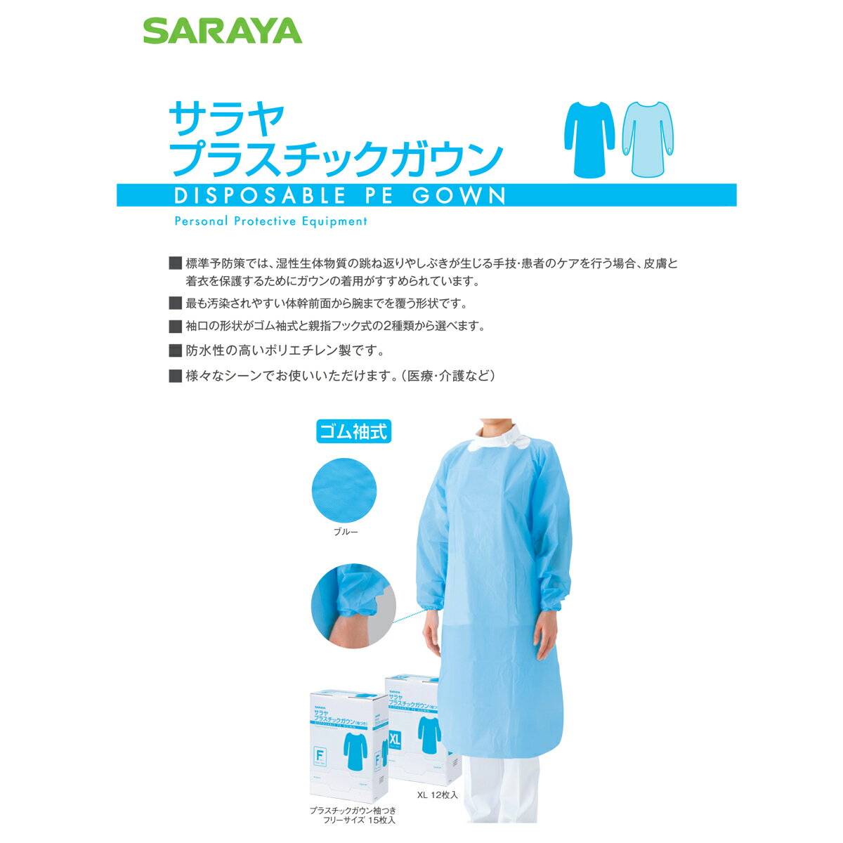 1箱880円/51096 サラヤ プラスチック ガウン 袖つき ブルー フリーサイズ(15枚×10箱)【使い捨てエプロン・使い捨てガウン・袖付き・プラスチックガウン・感染症対策・来客用・ディスポエプロン】