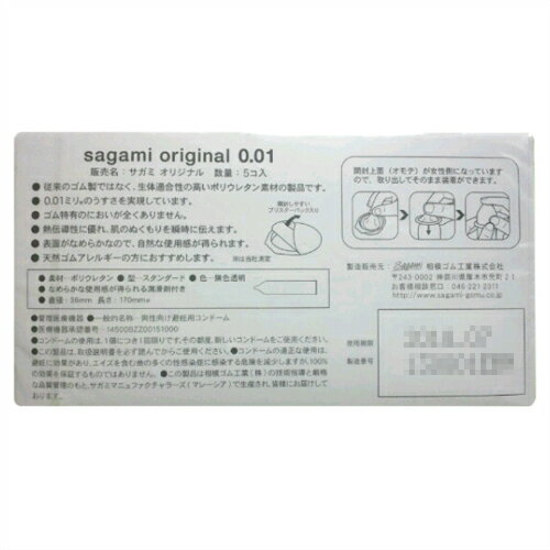 ◆【最強翌日配送】【ネコポス送料無料】【男性向け避妊コンドーム】相模ゴム工業製 サガミオリジナル0.01(sagami original 001) 5個入り ※完全包装でお届け致します。【smtb-s】