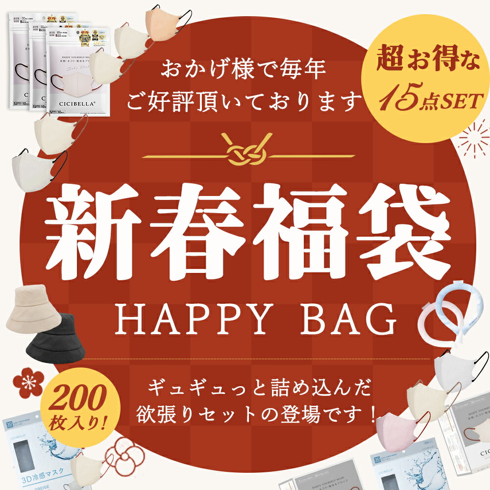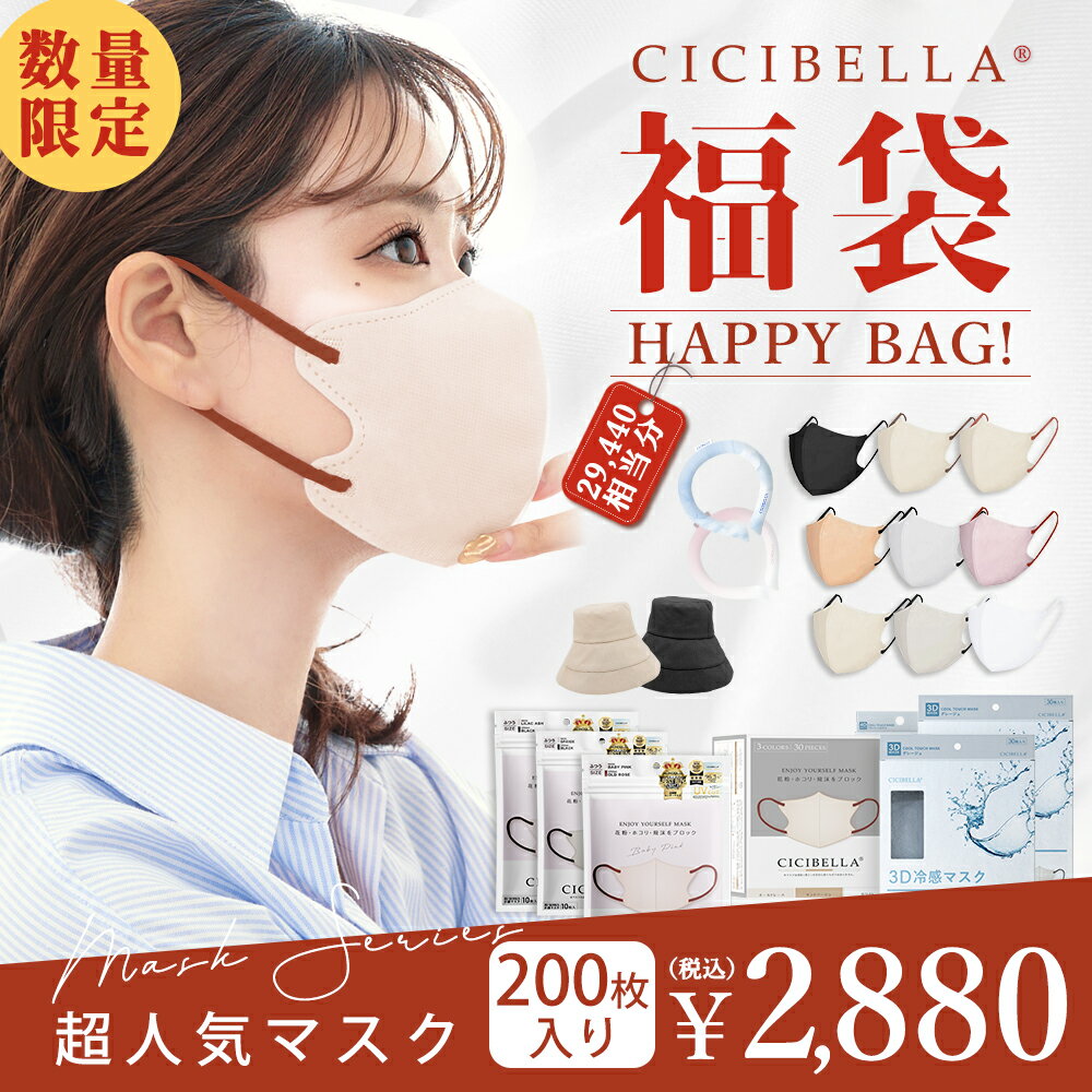 CICIBELLA大人気立体バイカラーマスク 福袋15点セット 血色マスク 不織布 くちばし マスク 不織布マスク 立体マスク 3Dマスク カラーマスク おしゃれマスク 冷感マスク UVカット帽子 人気アイテム入り もりもり盛り沢山の計200枚マスク福袋 春