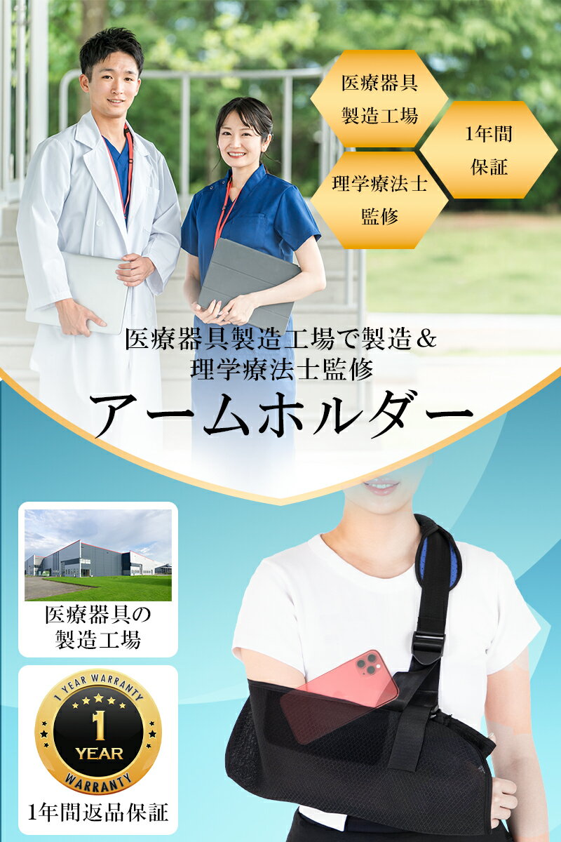 【12/4 20時から50%オフクーポン配布!】 【1年間保証付き・理学療法士監修】 三角巾 骨折 脱臼 腕つり アームリーダー アームホルダー アームスリング 腕吊り スマホ収納 腕サポーター 左右対応 130cm~160cm